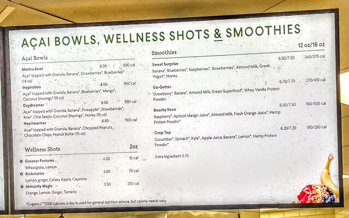 The menu structure supports a range of shopping needs, from picking up ingredients and groceries to enjoying ready-to-eat meals. The availability of fresh, health-oriented foods and a variety of beverages makes it suitable for visitors seeking both full meal options and lighter fare.